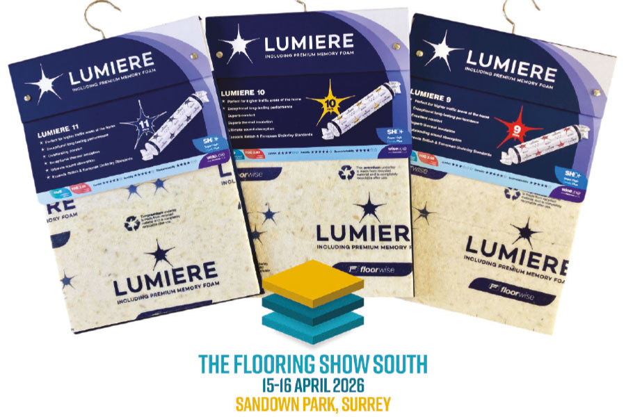The show will be one of the first opportunities to see the brand’s new Lumiere premium retail friendly underlay range. Made using a hand-sorted blend of pre-consumer recycled PU foam and memory foam to give the best of both materials, Lumiere is free from hard lumps and comes with an entirely different feel, making this unmistakably premium underlay stand out from the crowd. It is available in three classic thicknesses and is supported by high quality A3 sampling for retailers and installers, as well as floorwise’s unique A4 sample cards that add extra versatility to presentation options.