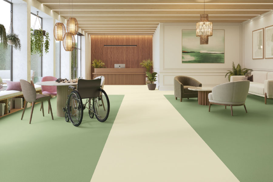 In line with Polyflor’s ongoing commitment to the healthcare sector, Geotone QuickLay PUR is a Dementia Design Accredited Product, thanks to the University of Stirling, promoting positive and inclusive environments for those living with dementia.