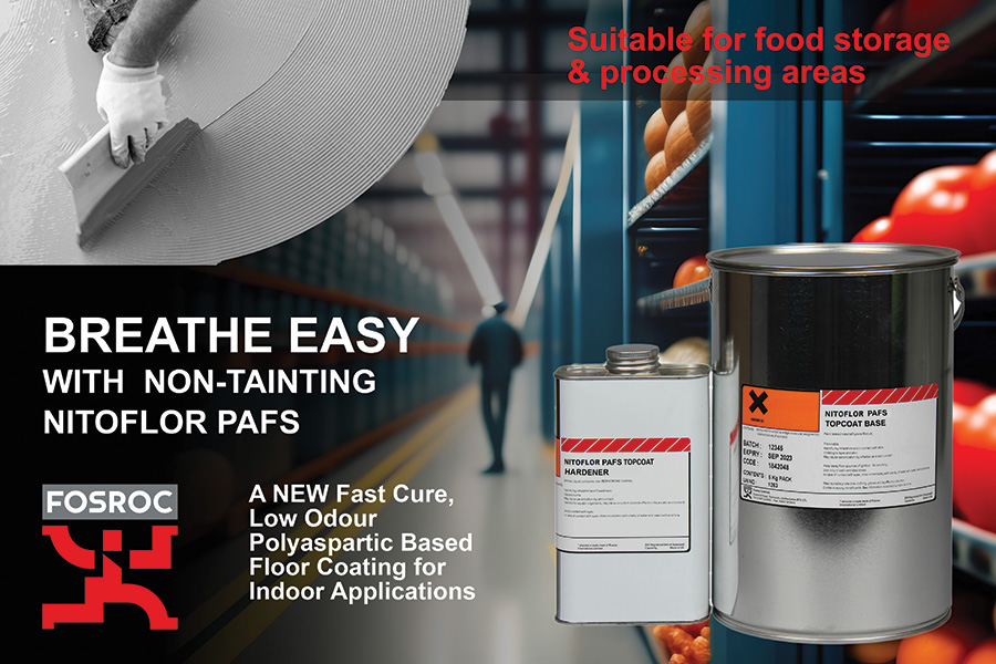 Says the company, ‘Nitoflor PAFS is a quick curing polyaspartic FERFA Type 3 coating resin flooring system with very little odour (non-tainting to foodstuffs) during application and curing. It also has excellent durability and resistance to cleaning chemicals and wear resistance to traffic.