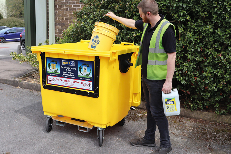 Last year, 13 tonnes of plastic buckets, equating to 23,000 buckets, and 1,560kg of bottles (about 12,000), were collected and recycled through the scheme. F Ball plastic buckets and the company’s five and 20 litre plastic bottles used for liquids, primers and tackifiers can be recycled via the scheme, with much of the packaging itself manufactured from recycled materials.